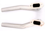High quality stainless steel headers available in three different drops to fit most applications. To determine the drop you need, measure from the face of the of the exhaust port down to the center centerline of the inlet on your canister or tuned pipe.